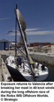 The 110 mile offshore race of the Rolex IMS Offshore Worlds has claimed one mast and several sails