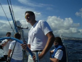 Just when things were getting serious aboard Happy Spirit, bang goes the spinnaker