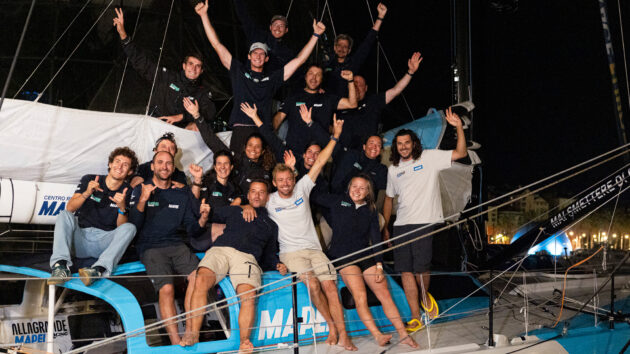 Ambrogio Beccaria’s team Allagrande Mapei Racing made a triumphant finish to The Ocean Race Europe Leg 4 as they arrived in Genoa, Italy early Wednesday morning.