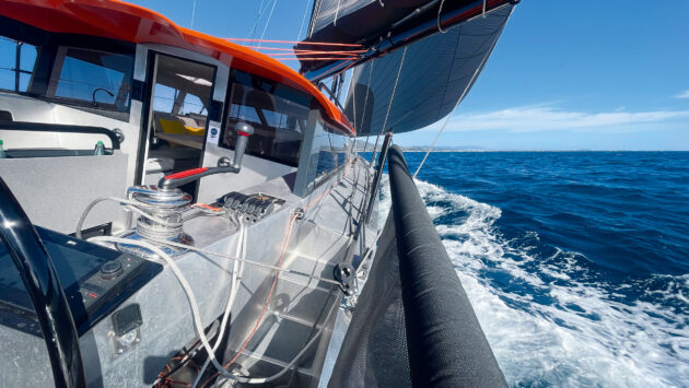 However, she needed a much firmer hand and some focus because of her rather direct rudder gear ratio. We should probably have put in the first reef, but since she didn’t need it, we kept ploughing through the Spanish sea to windward at 42-45° true. This is where you would clearly distance all the other alloy competition. The Pure’s potential offers more than just fun; it can also help get you out of trouble on a lee shore when the fuel level runs low.