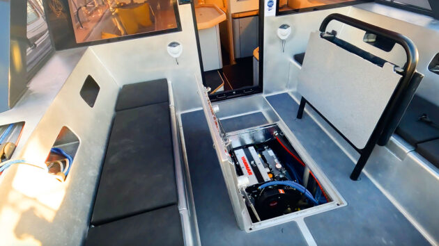 Cockpit benches open to vast lockers and engine access is excellent – from the cockpit sole hatch and lockers both sides. Photo: Andreas Lindlahr/EYOTY