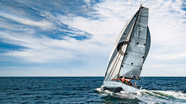 Powerful shape: the test boat also has an optional carbon mast and square-top mainsail. ‘Tom Kyle’ is an old German term for fjord, from which Kiel was derived – home to the Pure yard. Photo: Irk Boockhoff