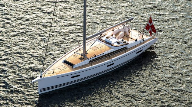A deck-stepped mast supports the generous 15/16ths rig. A self-tacking jib will be standard, or you can choose a 115% headsail. In-mast furling will be another option, and fitted to the first boat.