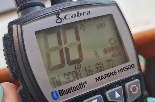 When we transmit on channel 16, the internationally recognised channel for listening and distress communication, then most of the modern sets, handheld or fixed will automatically switch to maximum power, which for consumer sets like ours is 25w for a fixed set with a masthead antenna and 6w for a handheld VHF marine radio.