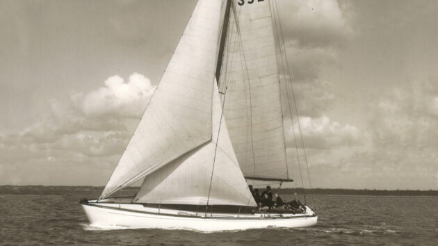 The Laurent Giles design was radical for its time. The owner’s brief, according to Giles, was to “go ‘flat-out’ for the Fastnet; minimum size, rather light displacement, no sheer or doghouse and very short overhangs”. The design also capitalised on the RORC rating of the time to maximise ‘free’ headsail area.